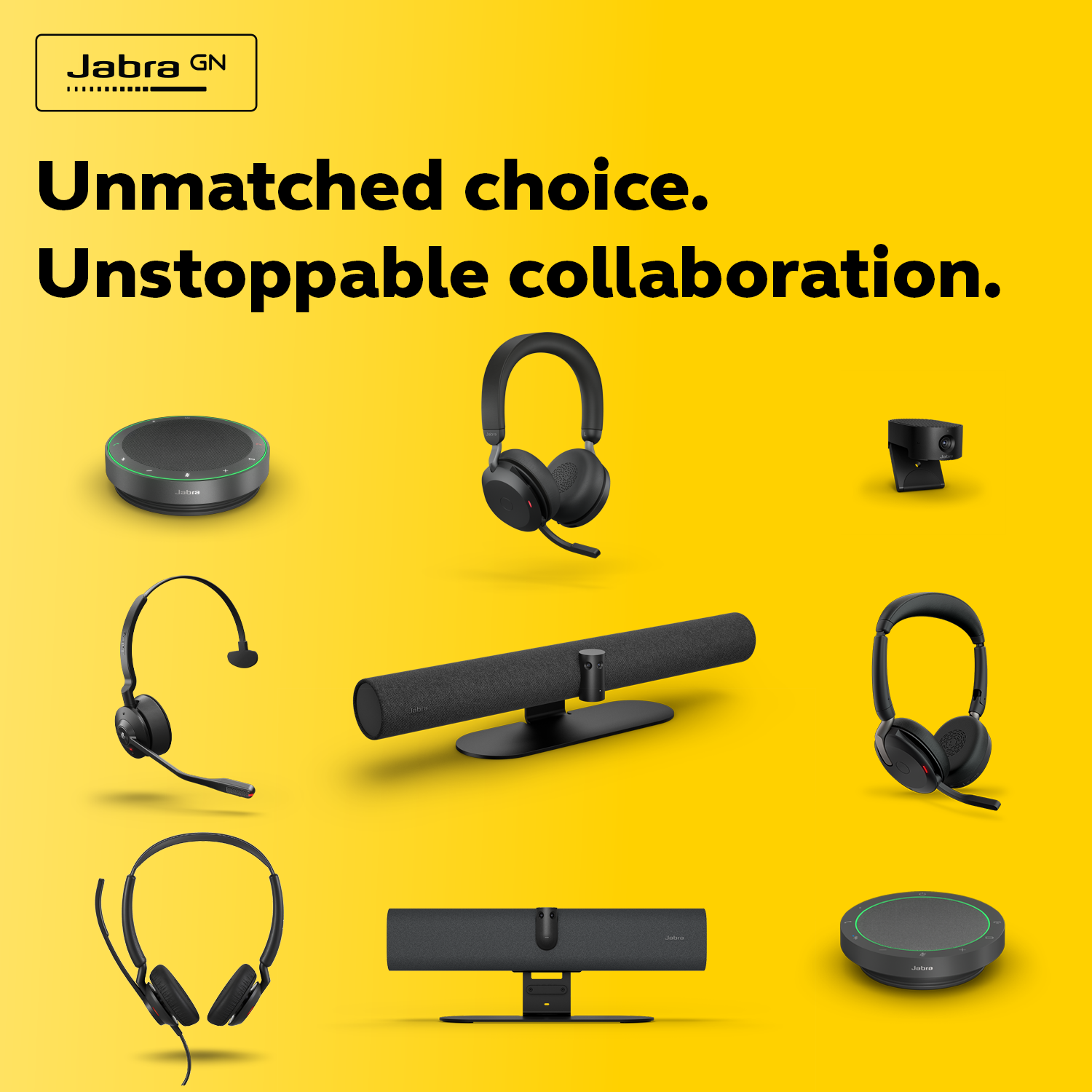 Jabra gives you more choice than anyone else, so you can go from Unmeetable to Unbeatable with the best device for your needs. Whether you’re on the go, in the office, or in a shared meeting space, our solutions seamlessly adapt