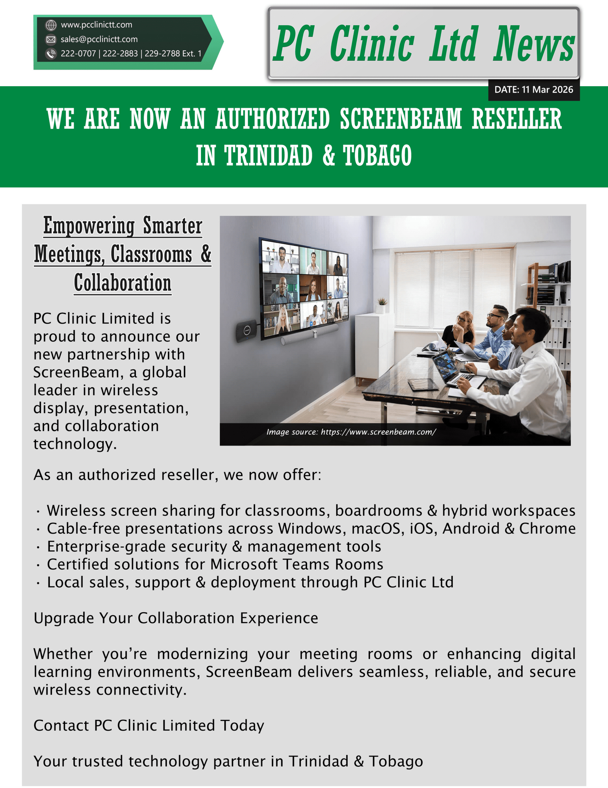 Blog We Are Now An Authorized Screenbeam Reseller In Trinidad & Tobago Posted by Clinical March 11, 2026 On March 11, 2026 0 Post Views: 9